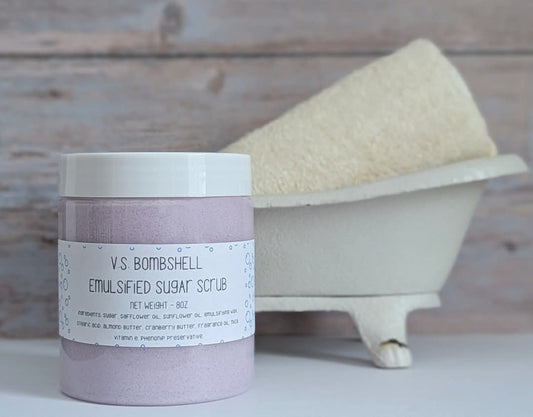 hi sugar! our emulsified sugar scrubs are creamier and thicker than a regular scrub due to the suspended ingredients which prevent separation! we craft each batch to exfoliate the skin with natural sugar and oils that nourish! all scrubs are paired with a mini bamboo spoon to scoop! 😋