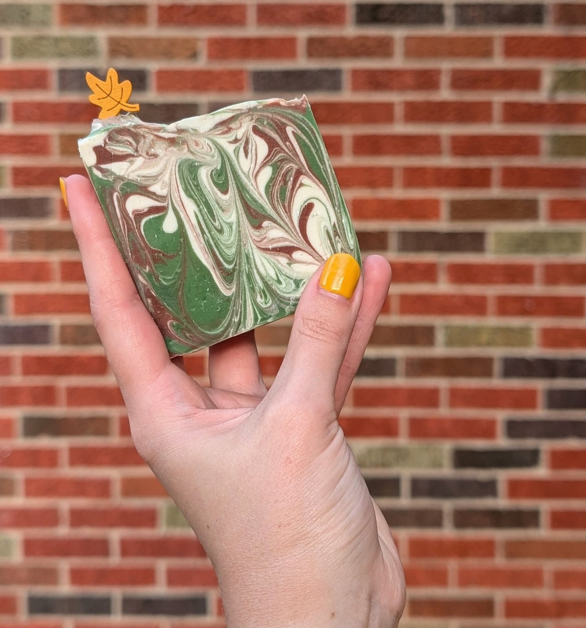 ingredients: coconut oil, olive oil, palm oil, fragrance oil, mica powder, leaf toothpick.