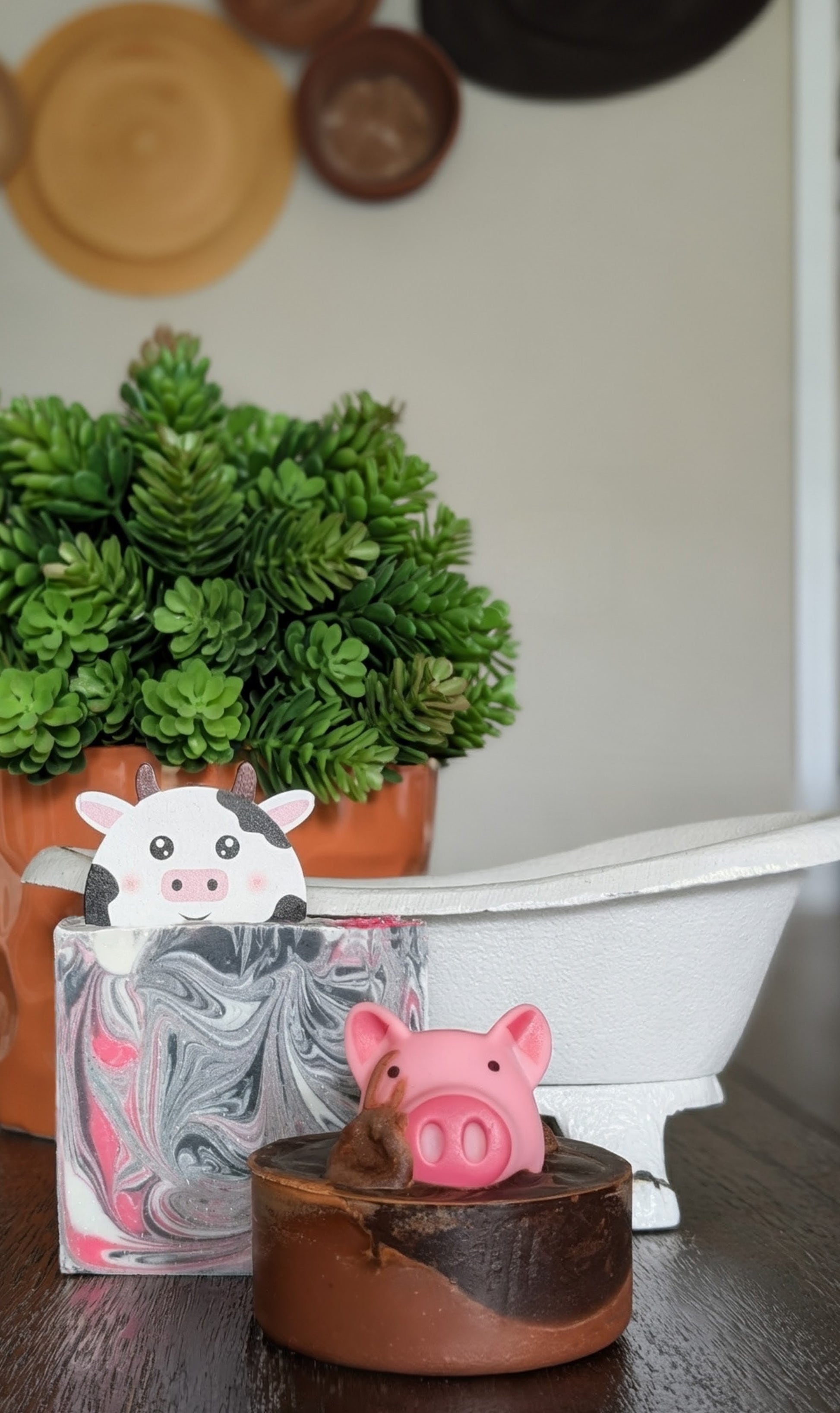 ingredients: coconut oil, olive oil, palm oil, fragrance oil, mica powder, eco-glitter, and a wooden cow.